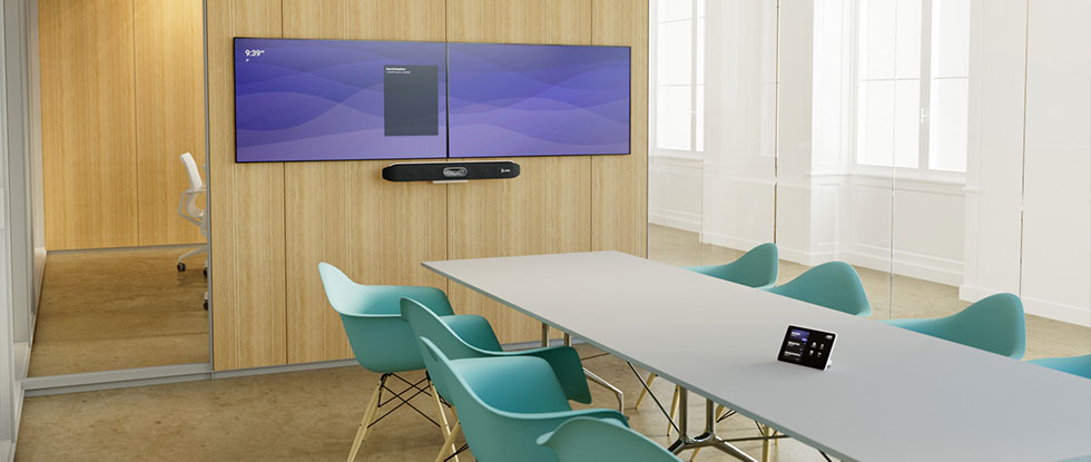 Ultra HD 4K映像、ワイヤレスでのコンテンツ(資料)共有機能を搭載したハドルルーム向けの小型ビデオバーモデル。タッチパネルコントローラー「TC8」セット。